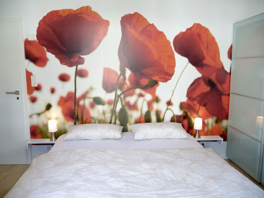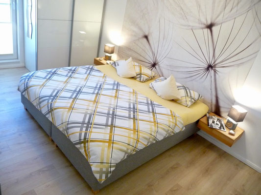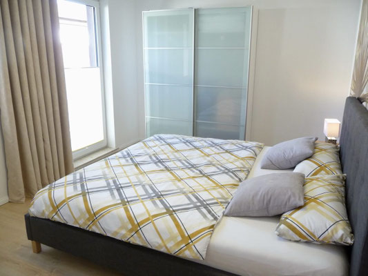Schlafzimmer 1 mit Doppelbett 180x200, Kleiderschrank und angrenzendem Badezimmer