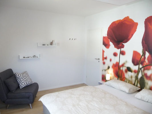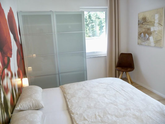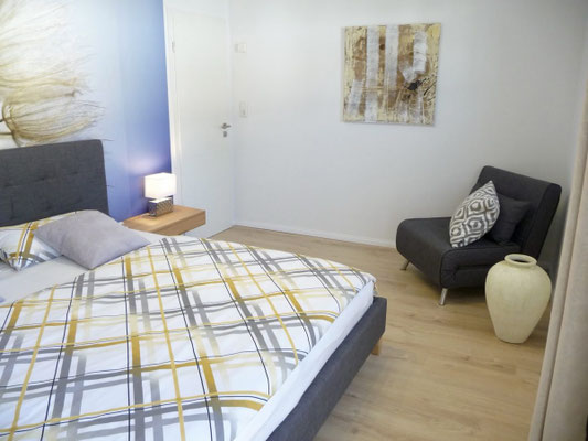 Schlafzimmer 2 mit Doppelbett 180x200, Kleiderschrank und Schlafsessel