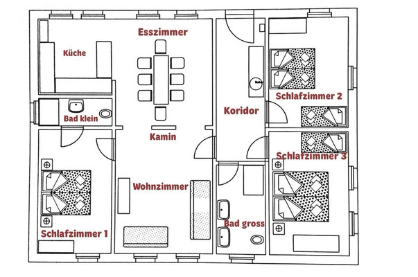 für max. 7 Personen (110 qm), 3 Schlafzimmer, 2 Badezimmer, moderner Speicherofen, energiesparende Infrarotheizung