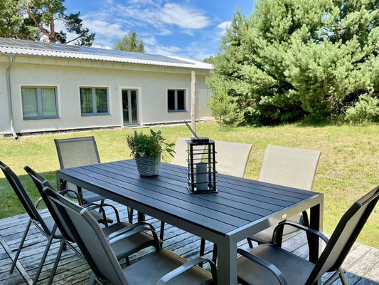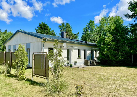 Außenansicht und Grundriss Ferienhaus Wiesenblick 5 in Pruchten